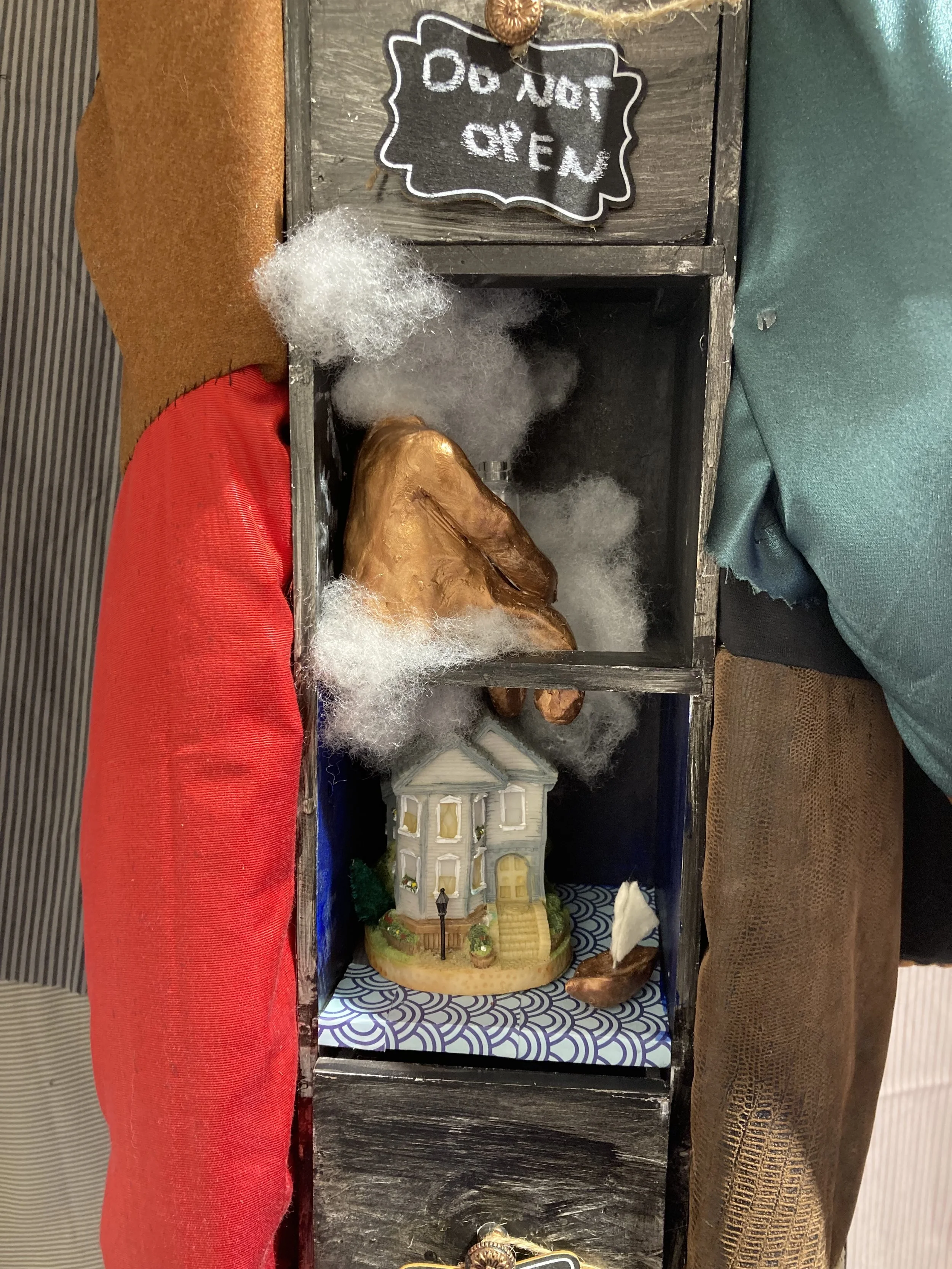 Breathing in the Memento Mori is an installation that was installed in 2022 in Studio 3 at George Fox University. Memento Mori is a phrase that originates from ancient Greece which translates to a reminder of death. This installation is a reflection of that phrase; a space that allows the viewer to sit peacefully with the understanding of death. The installation has a soft area in front of a grave stone that allows viewers to lay down and rest while looking up at the vast amount of white mushrooms above. This situation mimics how one might be while they have passed with their body under the soil. Other elements that are present in the piece that also touch on the idea of the end of life is the lite incense that slowly burns out leaving the room with a smoky scent and the live tulips that throughout time in the piece withers until they are nothing left but decomposing material. All these different elements are brought together to invite the viewer to have a moment of meditation in a safe calming space to think about a very real part of life.